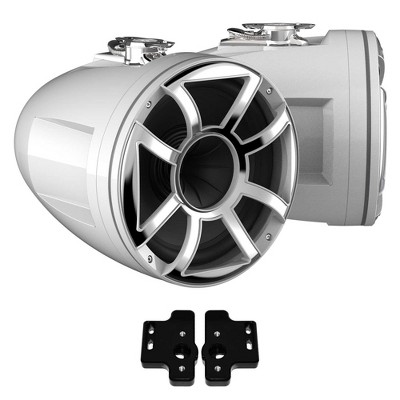Wet Sounds REV 12 HD 12" Horn Loaded Compression Driver Tower Speakers with XS Grills & Stainless Swivel Base Mount, 400 Watts RMS, White, Pair wit...