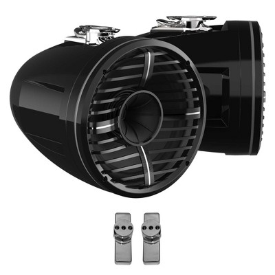 Wet Sounds REV 12 HD 12" Horn Loaded Compression Driver Tower Speakers with XW Grills & Stainless Swivel Base Mount, 400 Watts RMS, Black, Pair wit...