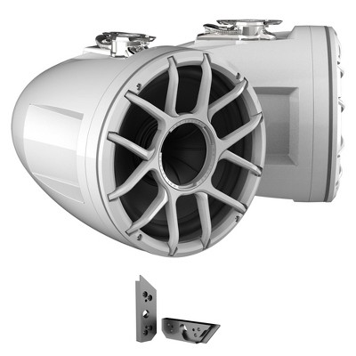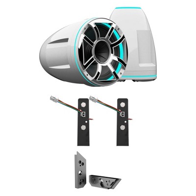 Wet Sounds REV 12 HD 12" Horn Loaded Compression Driver Tower Speakers with XW Grills & X Mount, 400 Watts RMS, White, Pair with Wet Sounds ADP MC ...
