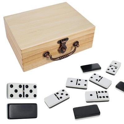 WE Games Double 6 Dominoes, Black & White Two-Toned with Spinners in Wooden Treasure Box