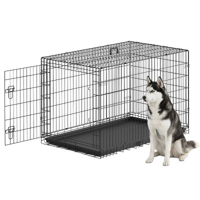 FDW 24-48 Inch Dog Crate Pet Cage with Metal Folding Design Plastic Tray Indoor Outdoor Dog Kennel Cage for Small Dogs,Black
