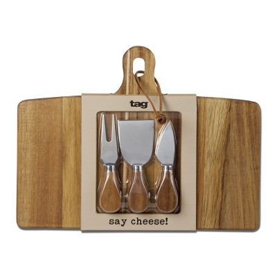 tagltd Long Acacia Wood Cheese Board Set of 4 with Stainless Steel Utensils - Natural Cutting Boards for Everyday Use