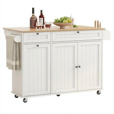 51 inch White Fluted Kitchen Island with Drop Leaf Rolling Kitchen Cart with Towel Rack for Kitchen Dining Room