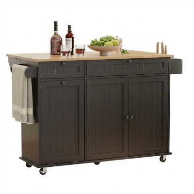 53 inch Black Farmhouse Kitchen Island Rolling Kitchen Cart on Wheels with Drop Leaf for Kitchen Dining Room
