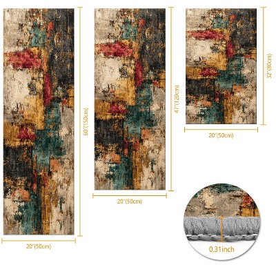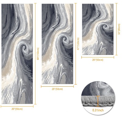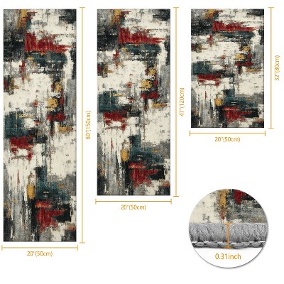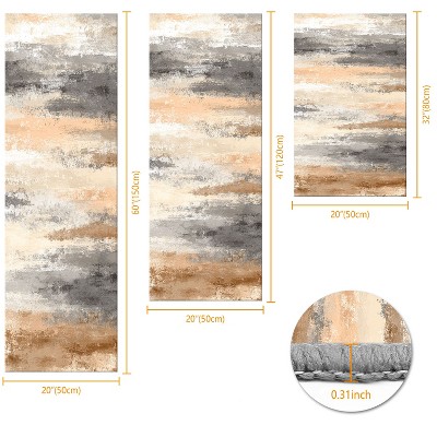 3Pcs Kitchen Rug Set Non-Slip Washable Abstract Soft Mat for Kitchen Bathroom Hallway Laundry Sink Floor