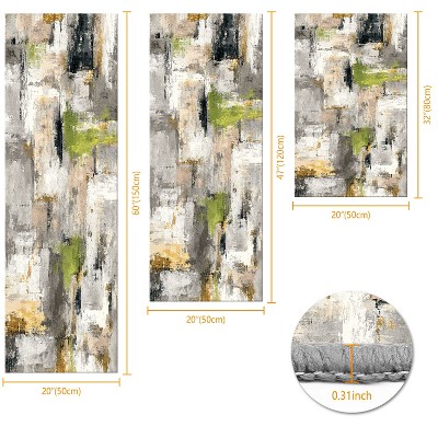 3Pcs Kitchen Rug Set Non-Slip Washable Abstract Soft Mat for Kitchen Bathroom Hallway Laundry Sink Floor