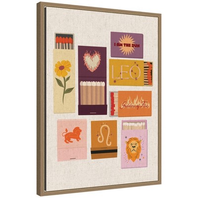 Kate and Laurel Leo Matchbooks Linen FC by Megan Ryan Framed Canvas Wall Art Print, Sylvie Dark Gold, 18x24