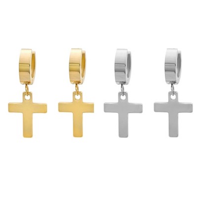 Steeltime Ladies brass simulated diamonds dangling charm heart huggie earrings. Color Options: White, Gold