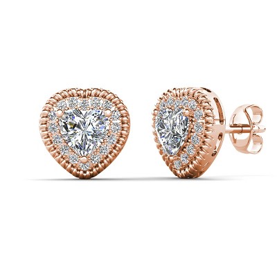 Cate & Chloe Coraline Heart Stud Earrings 18K Gold Plated with Simulated Crystals Classic Heart Design for Women