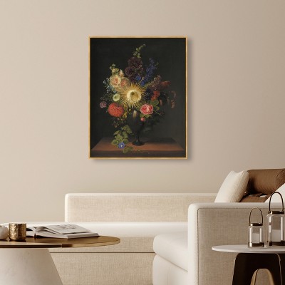 Amanti Art 23"x33" Rose bouquet in gold and black by Rosana Laiz Blursbyai Framed Canvas Wall Art Print: Modern Botanical Lithograph