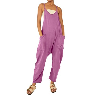 Nlife Women's Loose Casual V Neck Sleeveless Jumpsuits Spaghetti Straps Harem Long Pants with Pockets