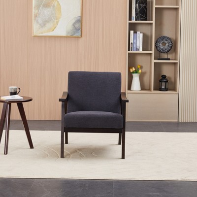 CAVINAS Mid-Century Modern Armchair, Tufted Back Upholstered Chair with Wooden Legs, Comfortable Accent Chair for Living Room, Bedroom, Office