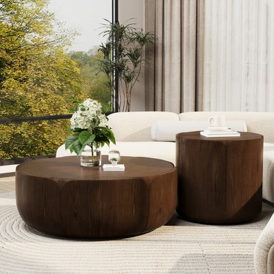 - round wooden coffee table
