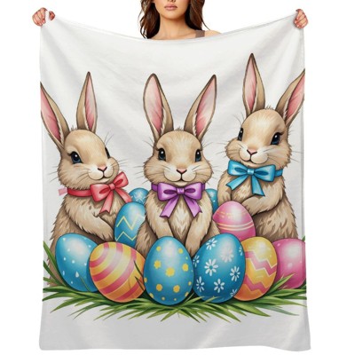 Easter Blanket Bunny Colorful Eggs Plush Throw Blanket for Couch Sofa Luxury Soft Cozy Lightweight Blankets for All Seasons 40x50 inches