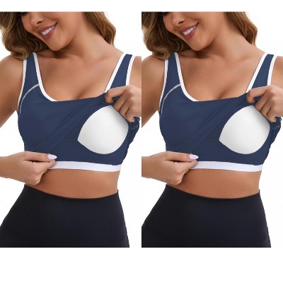 INSPIRE CHIC Women's Wide Straps U-Neck with Padded Push Up Elastic Tight Colorblock Workout Tank 2 Packs