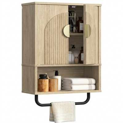 Dcolora Bathroom Wall Cabinet with Towel Bar, Fluted Doors, Medicine Storage Unit