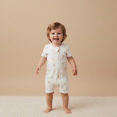 Organic Short Zip Romper - Ice Cream