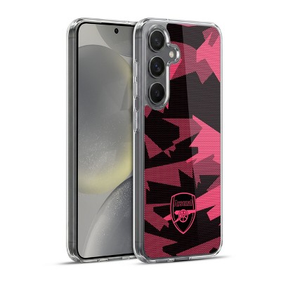 Arsenal FC Crest and Gunners Logo Geometric Pink Soft Gel Case for Samsung Galaxy S24+ 5G & MagSafe