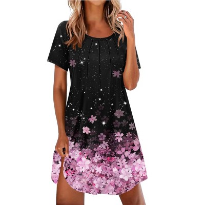 Ekouaer Nightgowns for Women Pleated Nightshirts Short Sleeve Sleepshirts Crew Neck Sleepwear Soft Night Gown Sleepdress