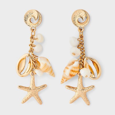 Sealife Hanging Charm Drop Earring - A New Day™ Gold