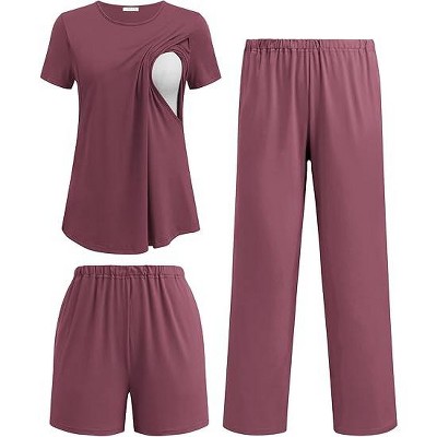Ekouaer 3 Piece Maternity Pajamas Set Postpartum Nursing Short Sleeve Breastfeeding Sleepwear Pregnancy Shorts & Pants Pjs