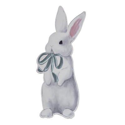 Transpac MDF Mint Julep Bunny Porch Plaque White and Green for Easter Garden Decor