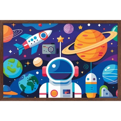 Trends International Science - Space Planets And Astronaut Framed Wall Poster Prints Mahogany Framed Version 22.375" x 34"