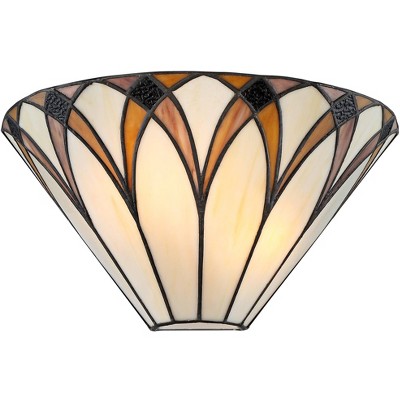 Regency Hill Filton Tiffany Style Wall Light Sconce Bronze Hardwire 12 1/4" Fixture Amber Yellow Stained Art Glass Shade for Bedroom Bathroom Hallway