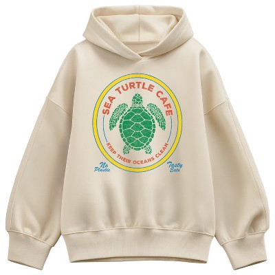 Women's - Instant Message - Sea Turtle Cafe Oversized Fleece Hoodie Sweatshirt