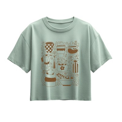 Girls' - Instant Message - Winter Drinks Grid Short Sleeve Boxy Graphic T-Shirt