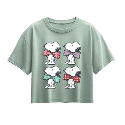 Girls' - Peanuts - Bowtie Patterns Short Sleeve Boxy Graphic T-Shirt