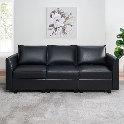 - black leather sofa