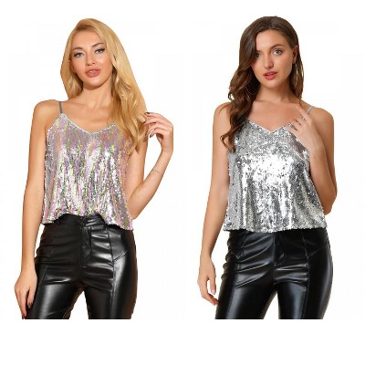 Allegra K Women's Sequined Shining Adjustable Straps Party Sparkle Cami Top 2 Packs