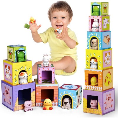 TEMI Farm Animal Sorting and Stacking Toys with Nesting Boxes and Finger Puppets for Toddlers
