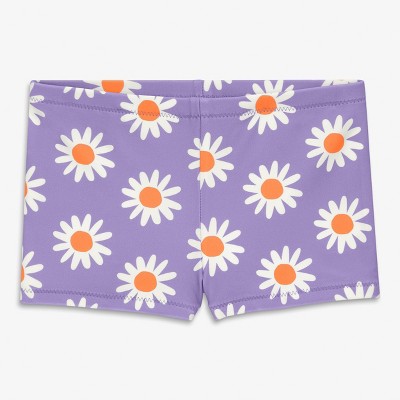 Deux par Deux Girl Swim Shorts Pink Hibiscus Print
