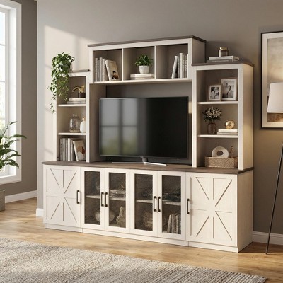 TV Stand with Mount and 4 Drawers Storage for 32/45/55/65/75/80 Inch Tv. Entertainment Center for Bedroom. Living Room. Wood Media Console Tables