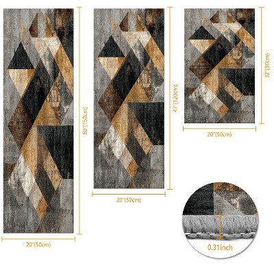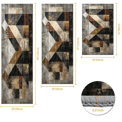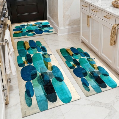 3Pcs Kitchen Rug Set Non-Slip Washable Abstract Soft Mat for Kitchen Bathroom Hallway Laundry Sink Floor