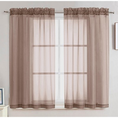 Home Mart Goods (63" Long) Taupe Sheer Window Rod Pocket Curtain Set - 2 Panels