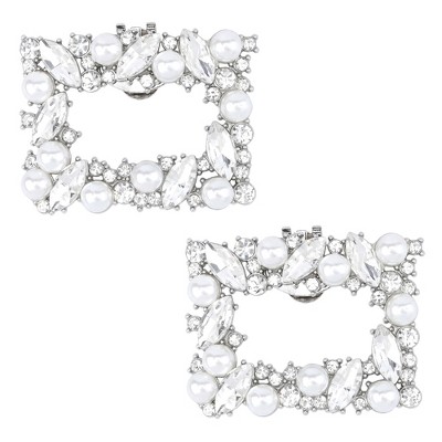 INSPIRE CHIC 2 PCS Women's Square Rhinestones Shoe Clips Pearls Removable Buckles Shoe Decorations for Gifts