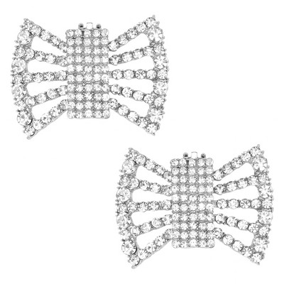 INSPIRE CHIC 2 PCS Women's Sparkly Rhinestone Shoe Clips Detachable Bow Decorations for Bridal Wedding