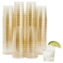 Prestee Gold Rimmed Plastic Cups Disposable Wine Glasses for Champagne, Martini, and Mocktails - 9oz, 100 Pack