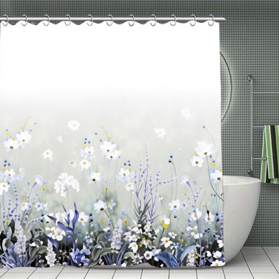 Floral Shower Curtain - Watercolor Plant Design, 12 Hooks, 72 Wx 72 H