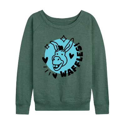 Women's - Shrek - Born To Yap Donkey Lightweight French Terry Wide Neck Long Sleeve Graphic Shirt