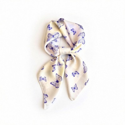 Anna-Kaci Butterfly Print Satin Square Scarf Lightweight Soft Hair Neck Wrap Fashion Accessory 27.5×27.5Inches