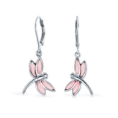 Bling Jewelry Dainty Butterfly Dragonfly Firefly Stone Shell Inlaid Dangle Earrings Silver