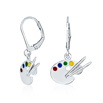 Bling Jewelry Painter's Palette Multi-Color Enamel Dangle Earrings in Sterling Silver