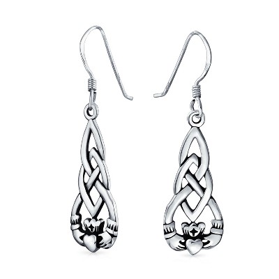 Bling Jewelry Friendship BFF Heart Circle Irish Love Symbol Celtic Claddagh Dangle Earrings Oxidized Sterling Silver Fish Hook