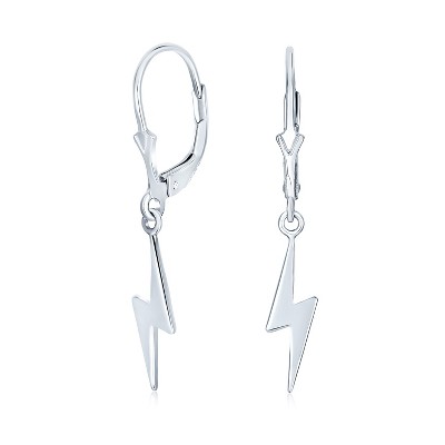 Bling Jewelry Delicate Minimalist Geometric Lightning Bolt Dangle Earrings in Sterling Silver