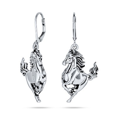 Bling Jewelry Equestrian Equine Gift Cowgirl Dangle Galloping Horse Earrings Sterling Silver Lever back