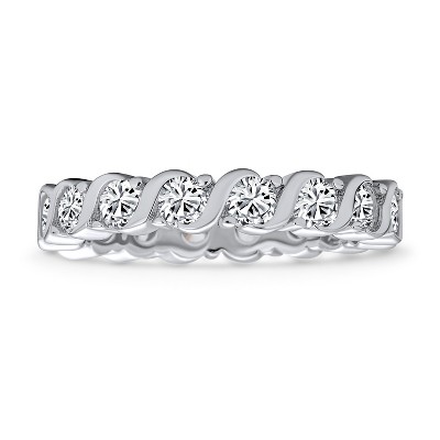 Bling Jewelry Cubic Zirconia Stackable CZ Eternity Thin 3MM Anniversary Band Ring Sterling Silver